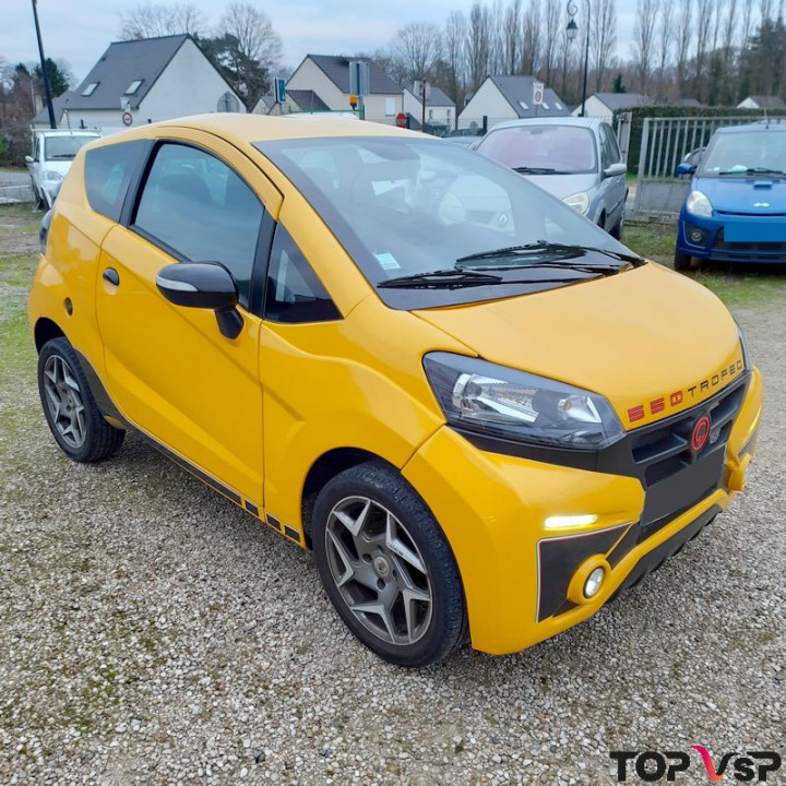Magnifique voiture sans permis d'occasion de première main, la Casalini 550 Trofeo élue la plus sportive de sa catégorie grâce à ses lignes pures et élégantes, un régal pour les yeux ! Elle est dotée de nombreux équipements de série d'excellente qualité et sa couleur jaune sport Vegas est unique dans le domaine des véhicules sans permis.